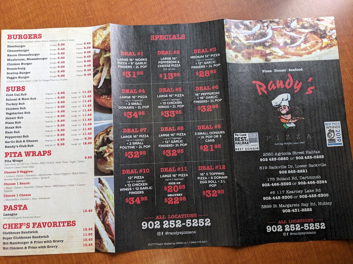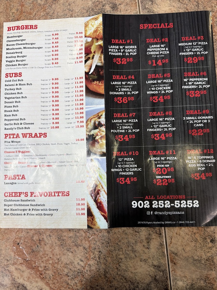 Randy's Pizza Menu
